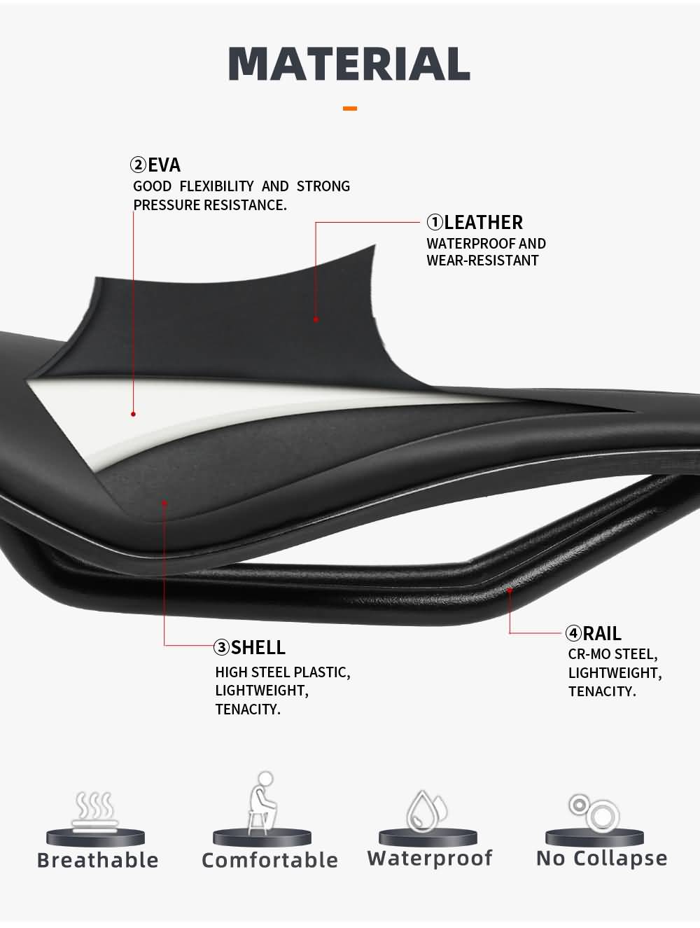 TOSEEK TS71 Bicycle Saddle 7x7mm Round Rails Mountain Bike Saddle EVA Bicycle Seat MTB saddle Seat