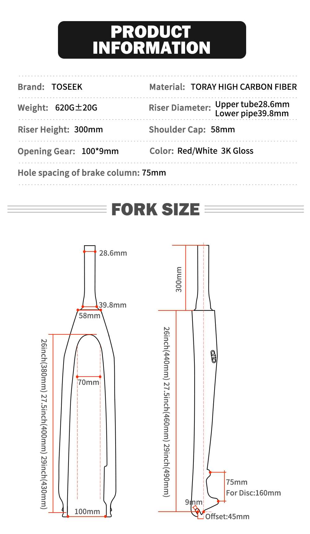 · Steerer Tube Length:300mm