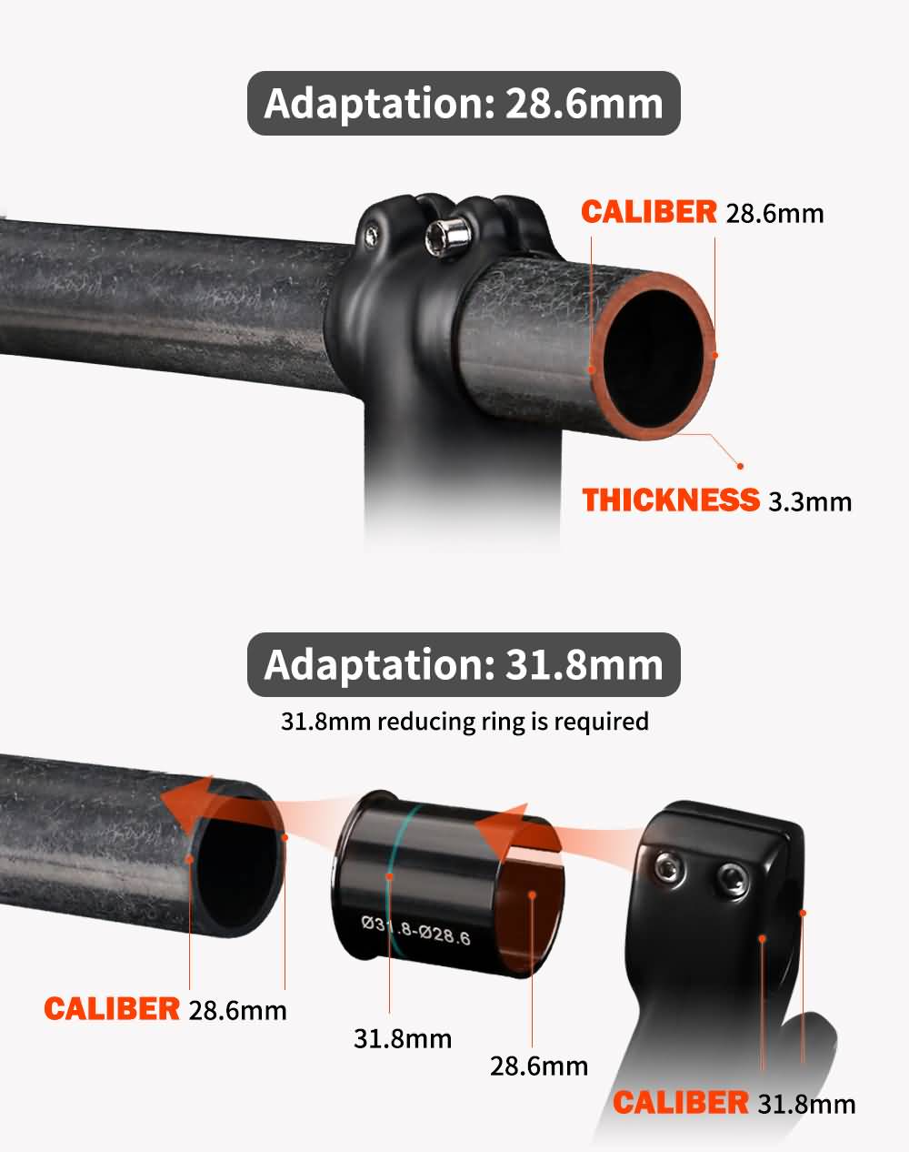 · Steerer Tube Diameter:28.6mm or 31.8mm(Deliver the adapter after the buyer leaves a message)