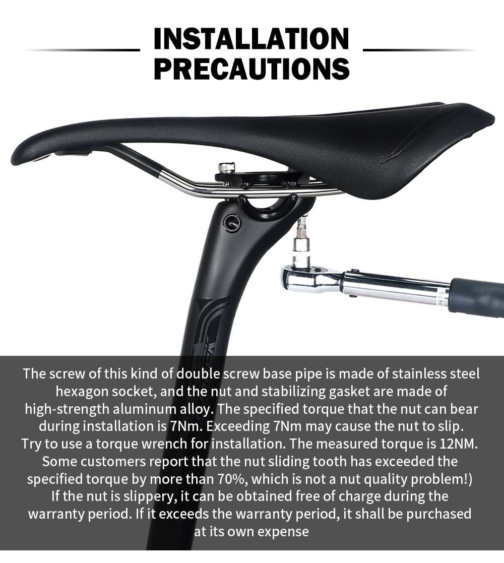 Torque Spec:Seatpost Collar Determined by your Frame manufacture/Seatpost Collar(Recommended locking torque ≤ 5Nm)