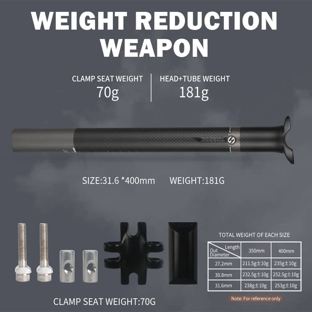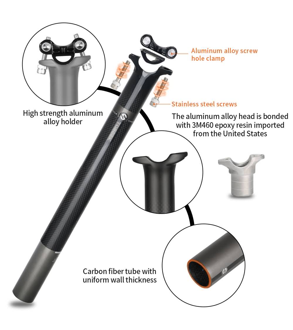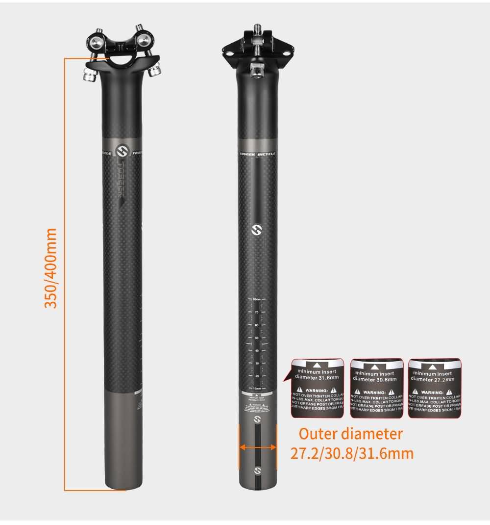 TOSEEK Carbon Seatpost Offset 0mm Bike Seatpost Carbon MTB Bicycle Seat Post